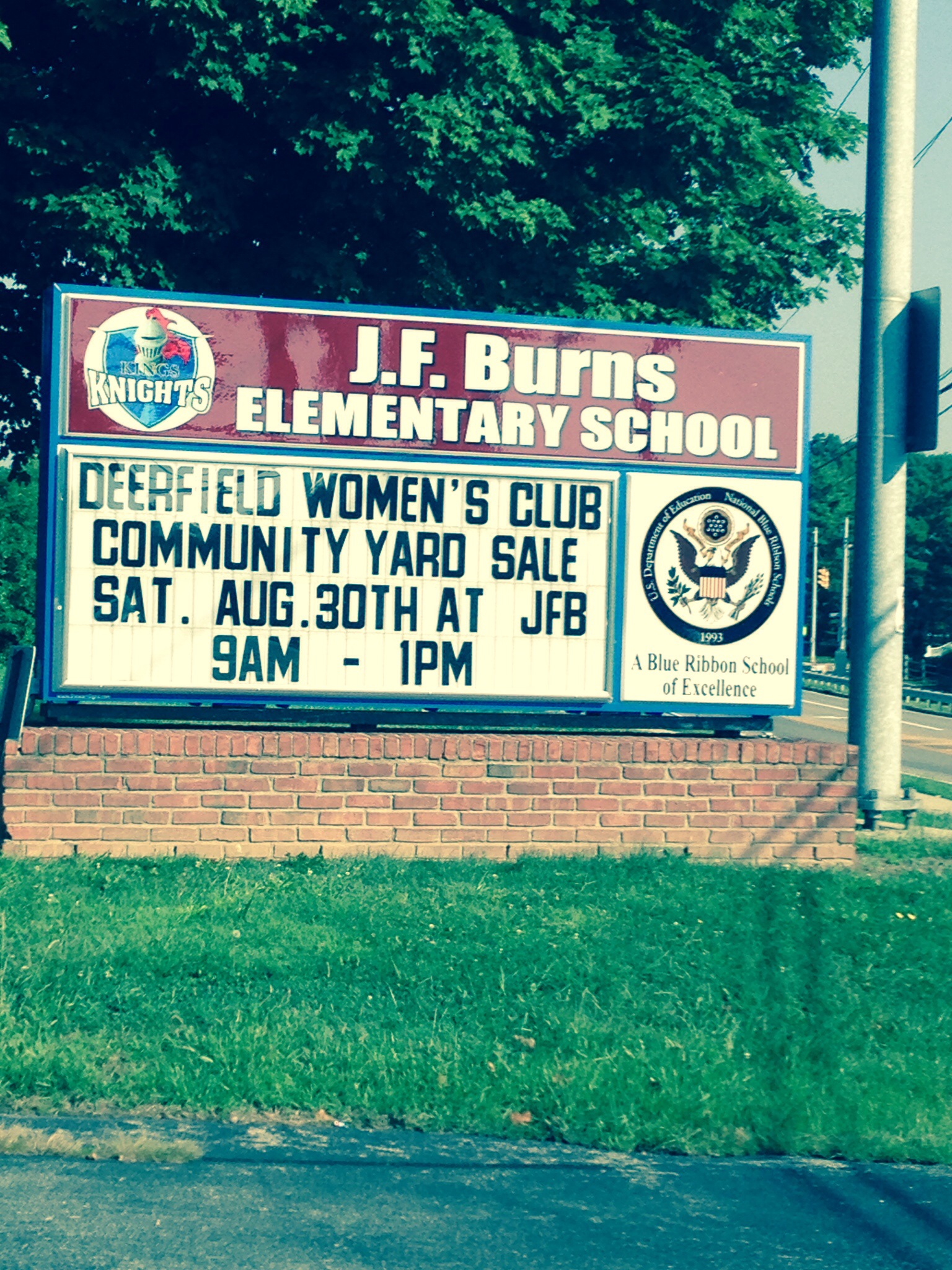 Our last sale for 2014, will be Saturday, September 27th 9 to 1. The location is JF Burns on Columbia Rd.